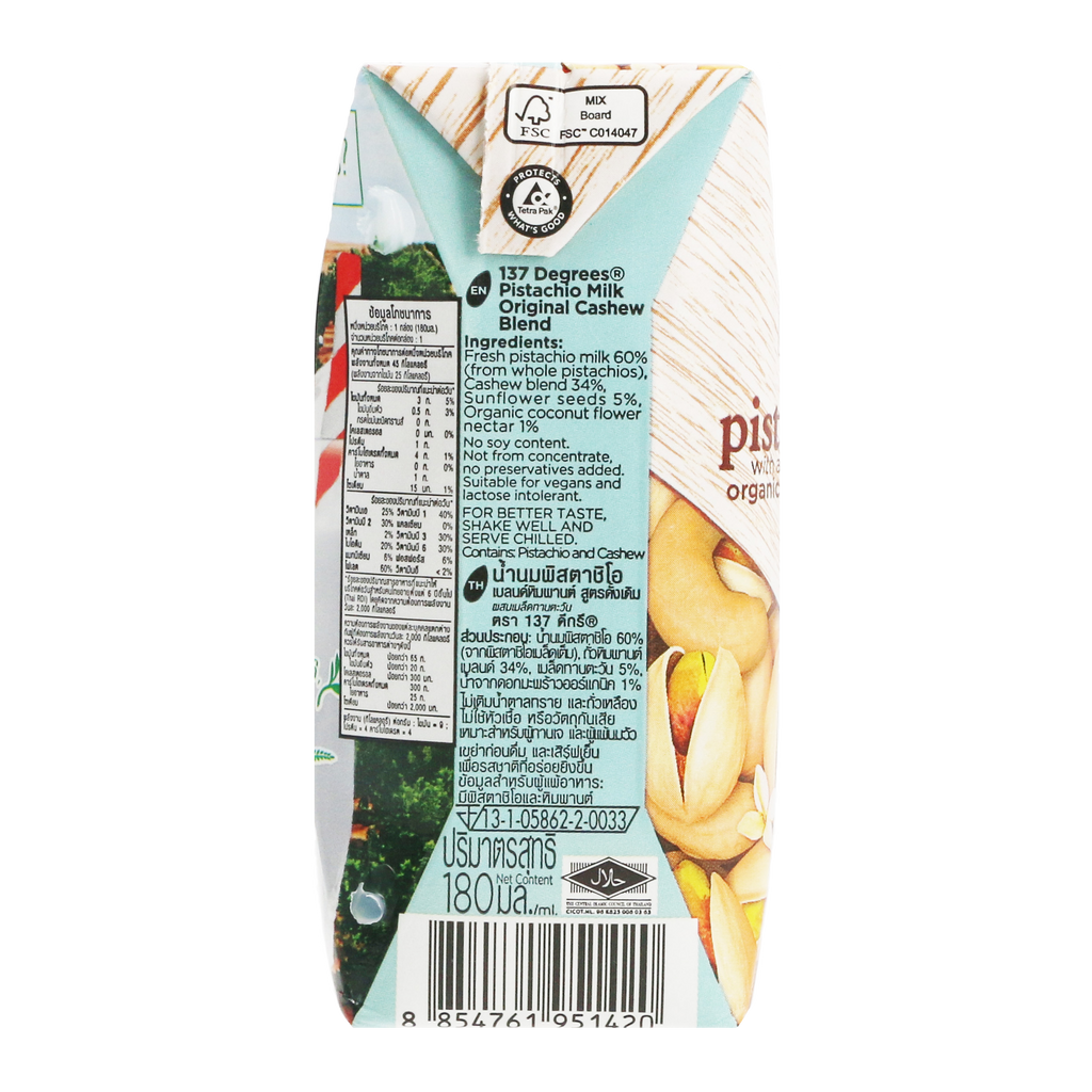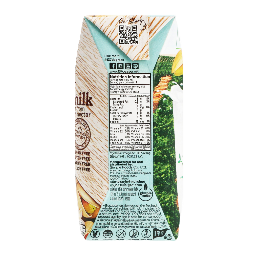This pistachio milk has a mild but rich, distinctive flavor of non-GMO pistachios with cashew blend. No cane sugar, carrageenan, preservative or nasty chemicals added. High in Vitamin Bs, Folic Acid and Omega. Zero-trans fat and zero-cholesterol. Lightly sweetened with low GI organic coconut flower nectar. Only 60 calories.